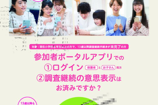 - 中学生になったら、エコチル調査の質問票は紙からWEB質問票への回答に移行しています。 WEB質問票に...